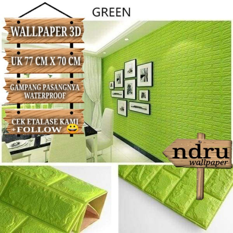 Bisa Cod Wallpaper Dinding 3d Warna Hijau Modern Bric Foam Green Batu Bata Lazada Indonesia